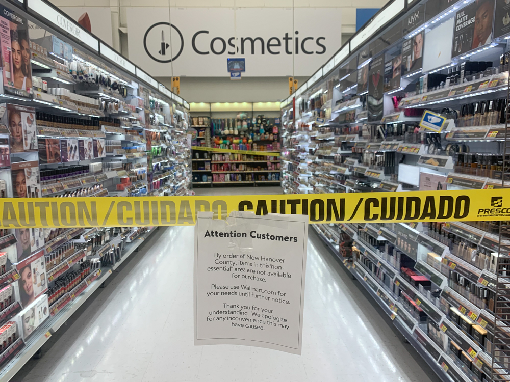 Although there does not appear to be any sort of official stance on what exact items are considered nonessential, stores like Walmart have taken it upon themselves to limit access to parts of the stores in New Hanover County. Stores have also been working with the county’s legal department on a case-by-case basis to talk about specifics.