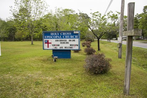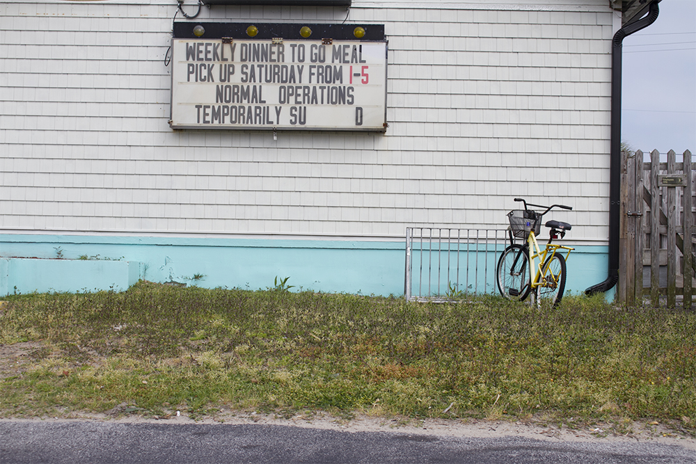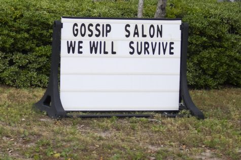 (Left) “Join services on-line; all are welcome,” Holy Cross Episcopal Church, New Hanover County. (Right) “We will survive,” Gossip Salon, New Hanover County.