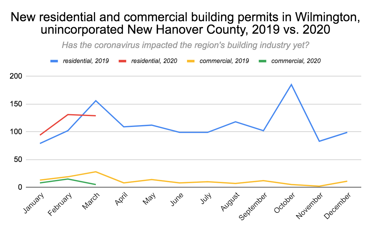 Cameron Moore, executive officer of the Cape Fear Homebuilders Association, cautions against reading too far into this dip. The slight decrease is more weather-related than it is a reflection of coronavirus impacts, he said, adding it may still be too soon to tell.