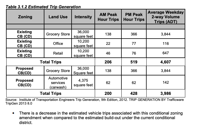 So what would approving the rezoning request do for traffic? Well, when compared to what is already approved, that is retail and office space, it would actually reduce it.