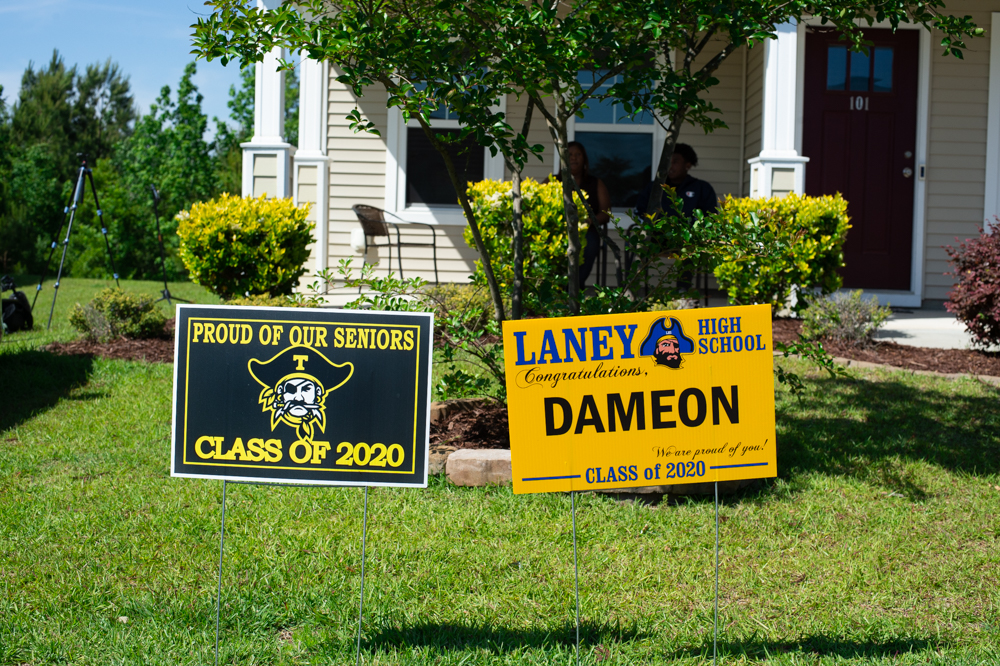 There was a sign in the front yard congratulating him on his graduation from Laney High, with his first name in large, capital, bold letters, according to Lea.