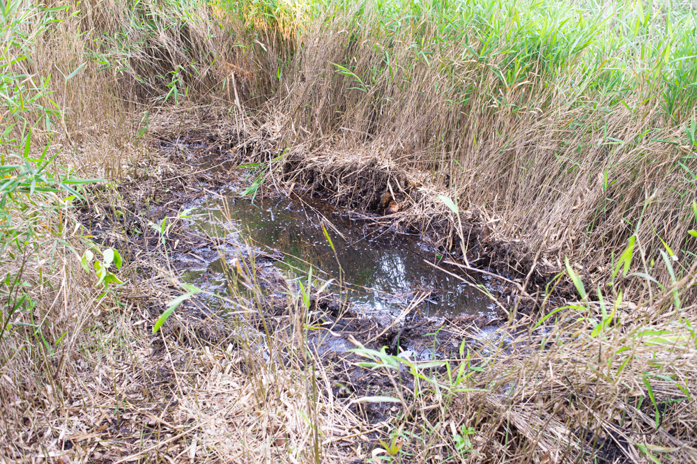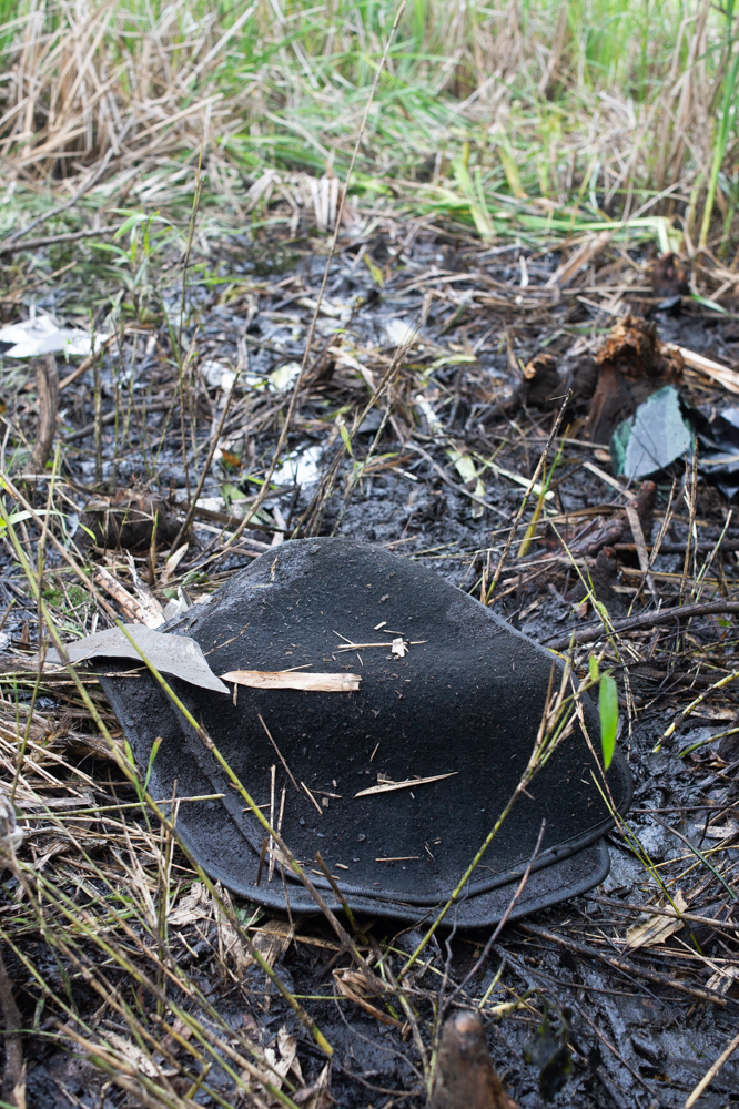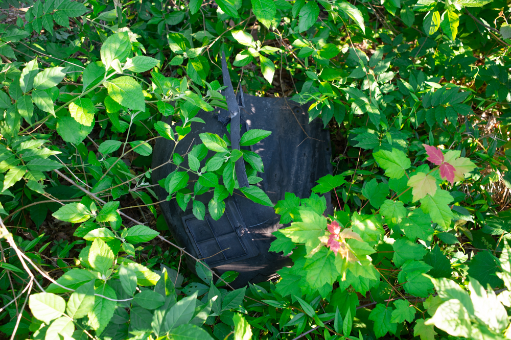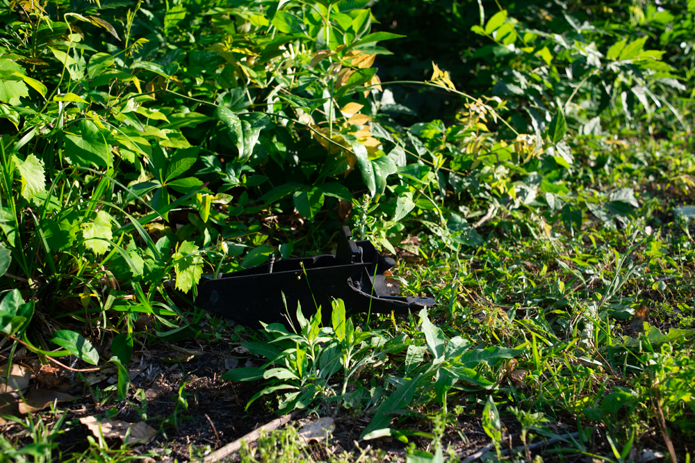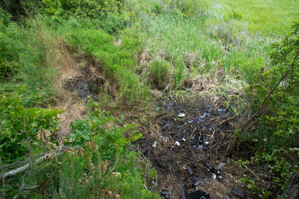 There was another rectangular impression 10 feet to the south of the tree, similar in size as the first, littered with more debris, plastic cups, and other items. This seems to be where the car eventually came to rest.