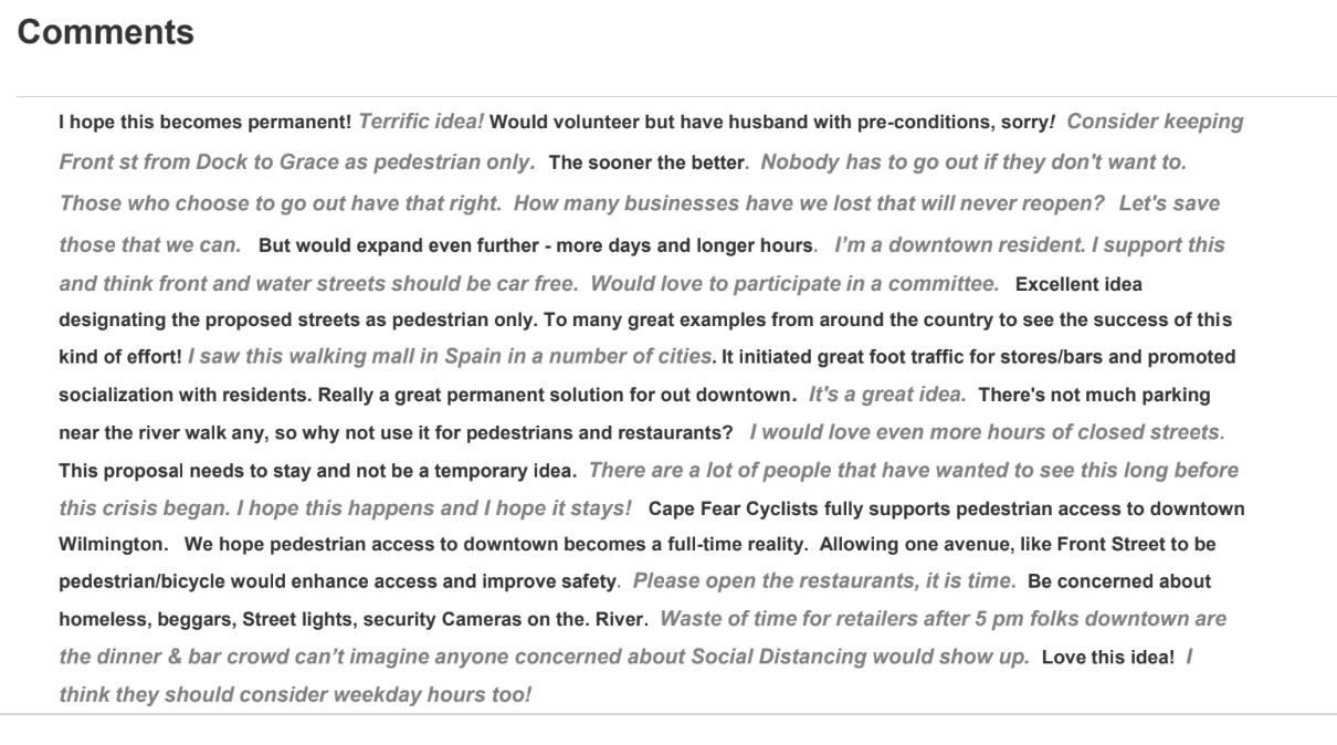 And, while the survey noted that the plan would only be for the duration of Covid-19 social distancing regulations, many of the comments suggested making the street-closure a permanent move; it’s not the first time the idea has been suggested, but it’s likely to be easier to implement as a temporary measure.