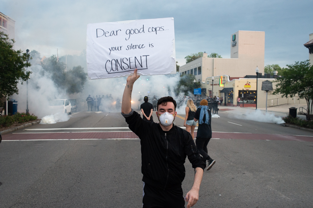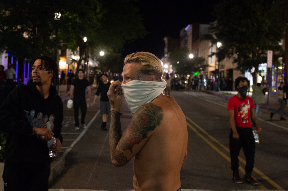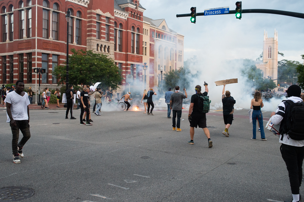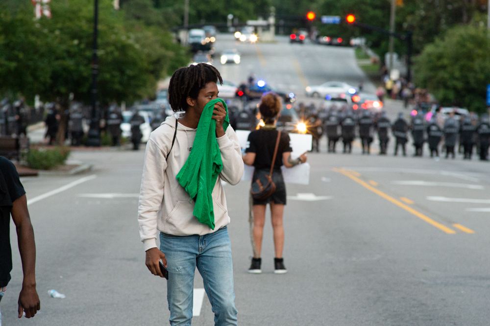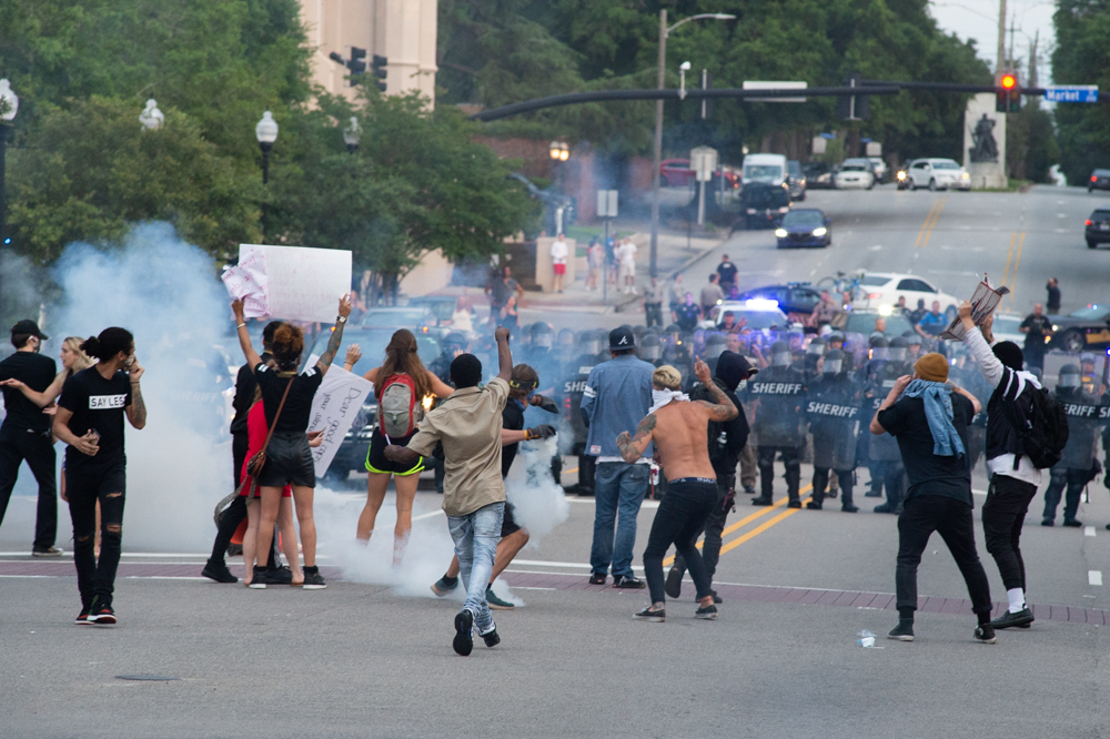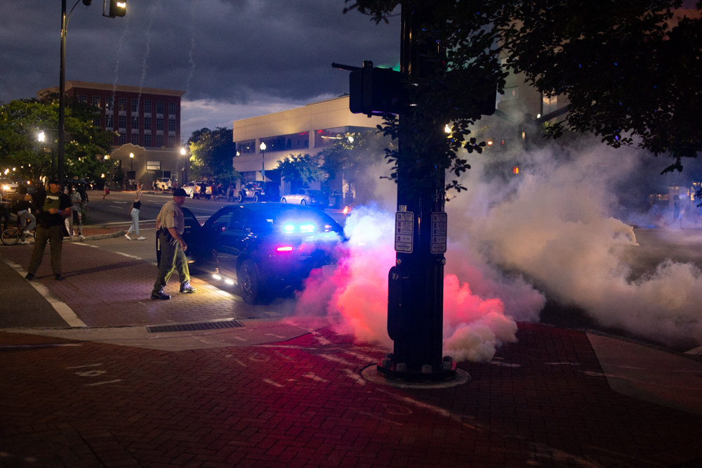 Protestors, who at that point had moved into the roadway on North Third Street, were given five minutes to disperse. When they did not, NHCSO fired canisters, which were reportedly tear gas. Protestors also threw bottles and other objects (including throwing the gas canisters back at deputies). The gas dispersed the crowd, with many heading to the North Front Street area.