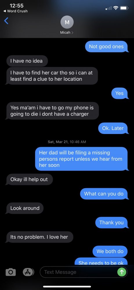 Text messages between Carolyn and Howard are revealing. They show Carolyn’s increasing concern for her granddaughter’s well-being — “This has never happened before. I think she is dead,” she texted on Friday, March 20, a week before her body was found. And they show inconsistent responses from Howard, with often delayed replies and wavering between attitudes of concern and indifference.