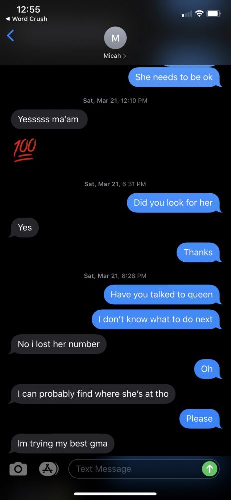 “Hannah told me to tell you thru text her phone is dead, she okay but she’s not with me [at the moment] but she ight,” Howard texted.