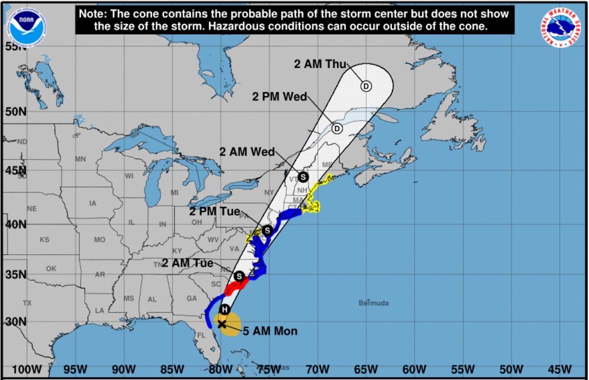 Isaias is now expected to bring hurricane-force winds and “life threatening” storm surge to Brunswick, New Hanover, and Pender counties. Tropical-storm force winds are expected to reach the region by 8 p.m. on Monday.
