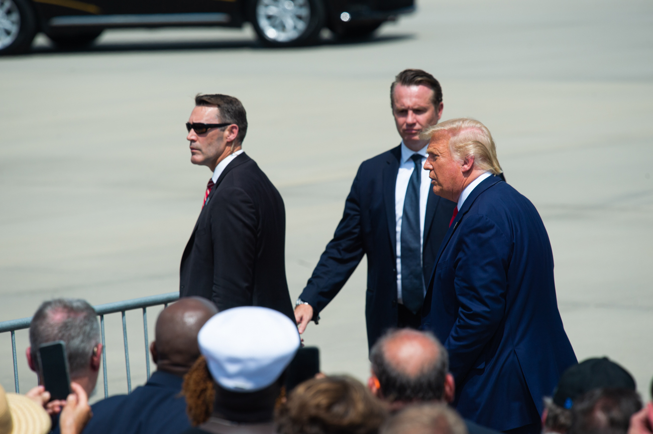 Trump was in Wilmington on Wednesday, Sept. 2, to declare Wilmington as the nation’s first World War II Heritage City. His brief time in Wilmington was split between delivering ceremonial remarks at the battleship U.S.S. North Carolina, and a more informal, rally-like encounter with the crowd that gathered to see Air Force One land at the airport.
