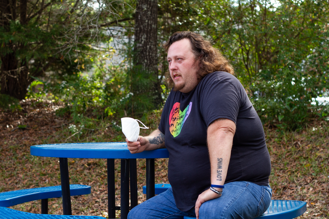 Evans started Walking Tall in 2015. One day he showed up to the gazebo with donuts and coffee after seeing displaced people congregating there. He struck up a conversation and then showed back up the next day … and the next … and every day since.