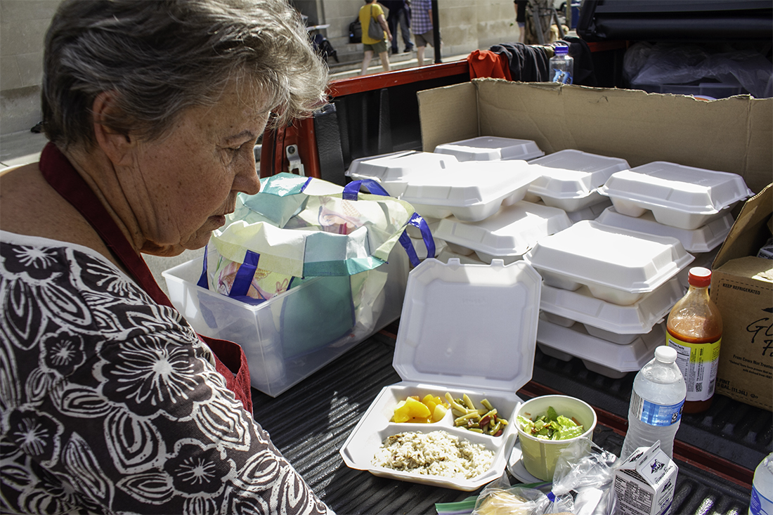 Evans’ nonprofit goes beyond sharing meals; it provides supplies, like blankets, jackets, clothing, toiletries, and now showers from a newly gifted mobile shower unit. During Covid-19 he upped the meals that he and volunteers make out of a church kitchen before delivering downtown. He used to provide breakfasts and lunches three days a week but since March has been doing five. He also provided masks, sanitizer and helped install hand-washing stations downtown in the spring, amid the initial rise in numbers from novel coronavirus.