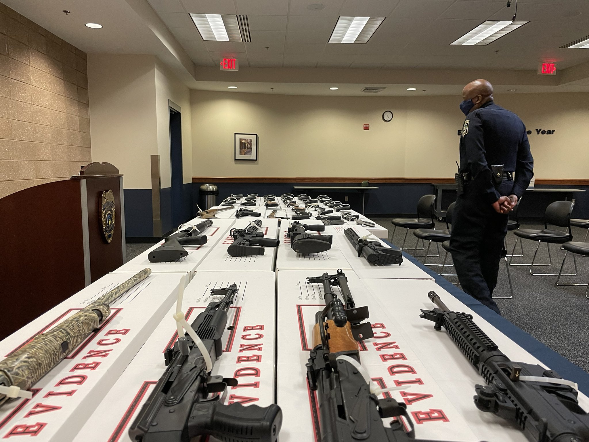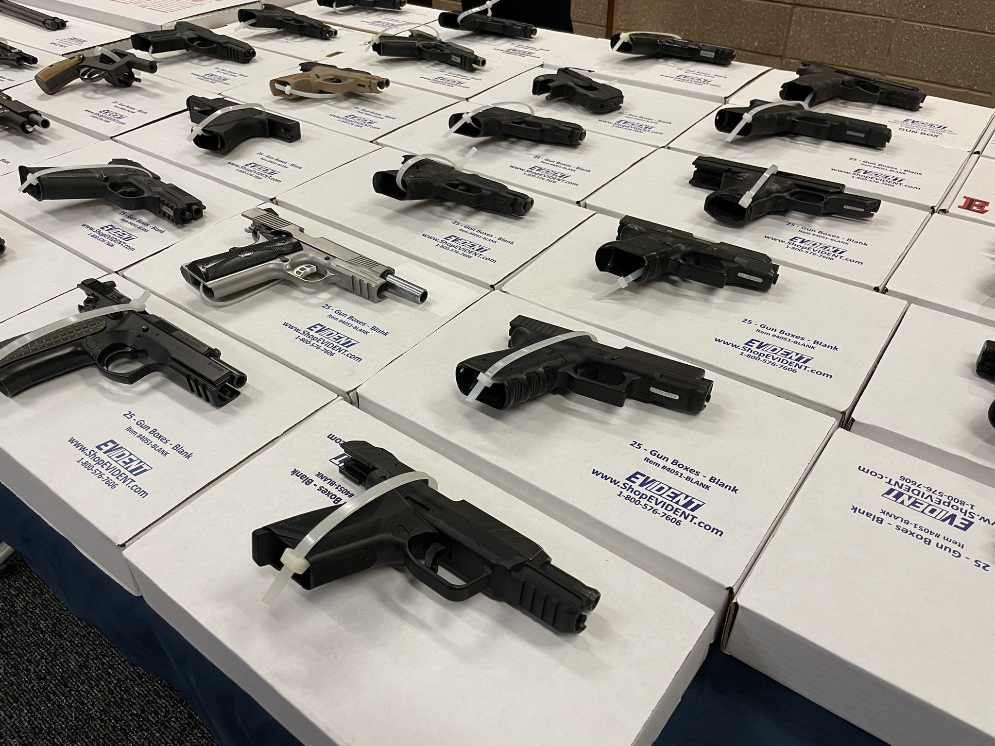 “If you wonder where they’re stolen from, it’s the people watching right now; it’s the people reading the paper . . . in other words, law-abiding citizens who have a second amendment right to peacefully possess, to have their carry concealed weapon permit. But here’s the problem: They’re leaving these guns in unlocked cars,” David said, motioning to the display of guns in front of him. “They’re leaving these guns in open view in their homes.”