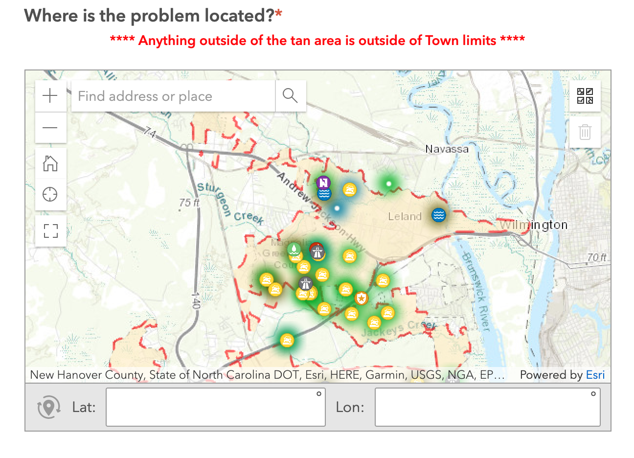 The Leland311.com app — which is replacing the town’s SeeClickFix app — also has a map so users can pin the address and location of the reported issues. The user can then see all of the complaints citizens have reported.