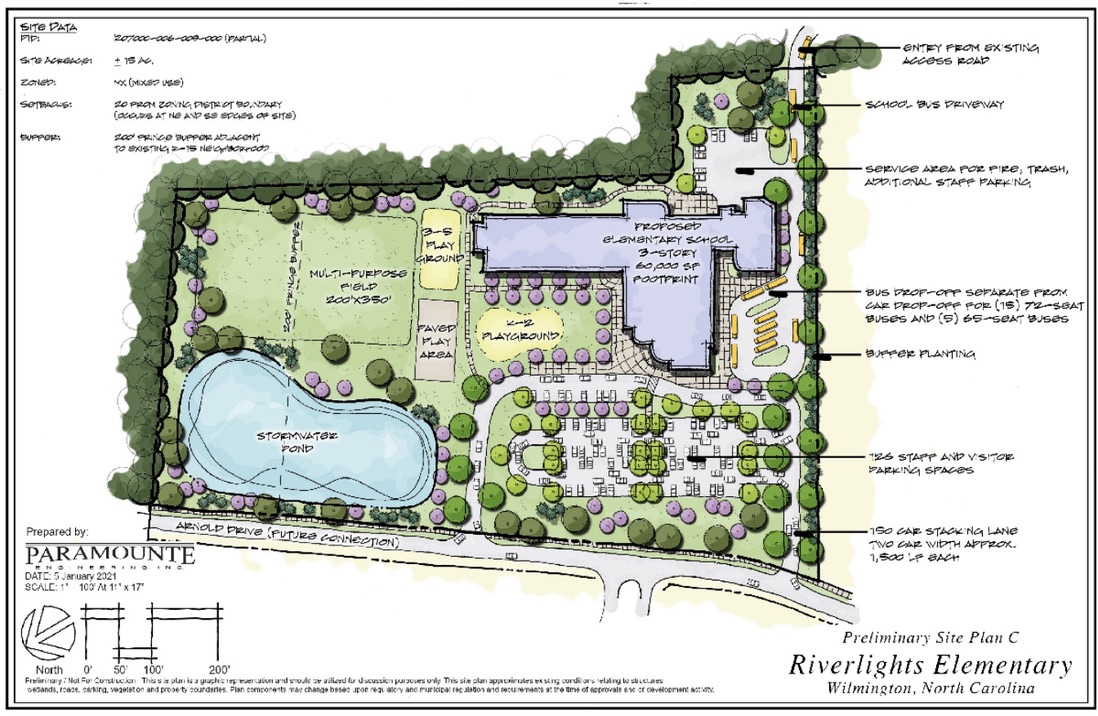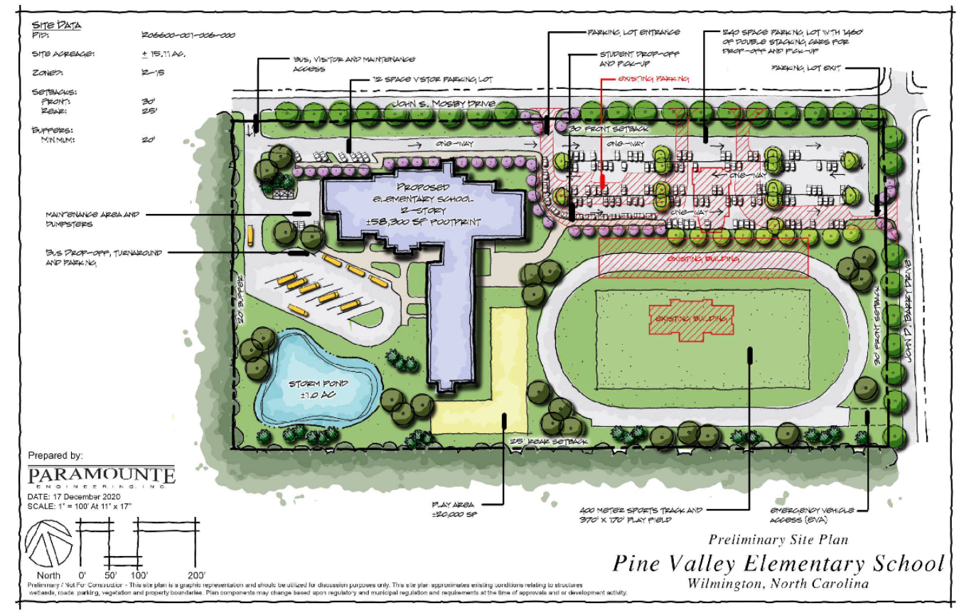 NEW HANOVER COUNTY – New Hanover County Schools is planning its 26th elementary school in the Riverlights community, as well as a replacement building for Pine Valley and extensive renovations to Mary C. Williams.