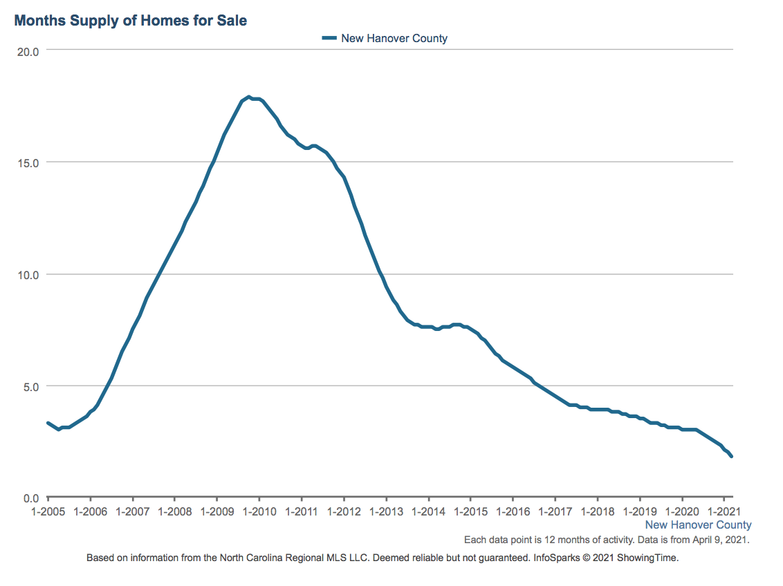 SOUTHEASTERN N.C. — Months supply has reached a record low in New Hanover County, as a frenzied sellers’ market eats up available inventory within days of listing — regardless of price point.