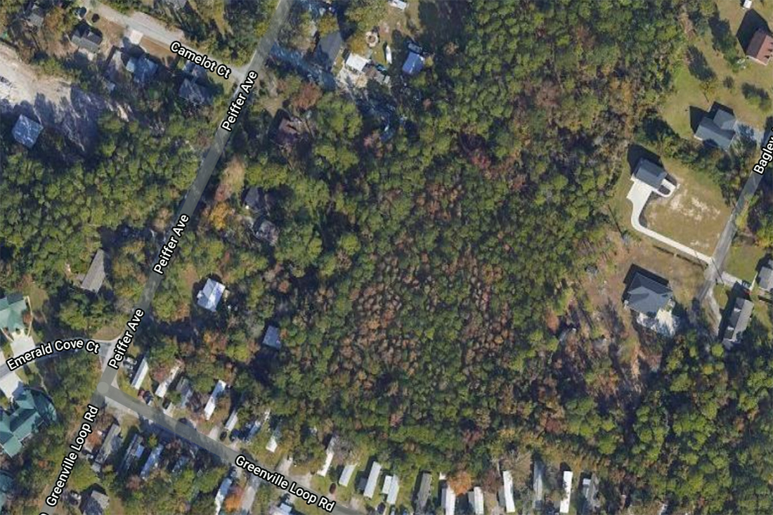 Three undeveloped parcels are bound by two mobile home parks, with Greenville Village mobile home park to the south. Each is slated to be rezoned from R-15 to R-5 (conditional district high-density residential), subject to approvals.