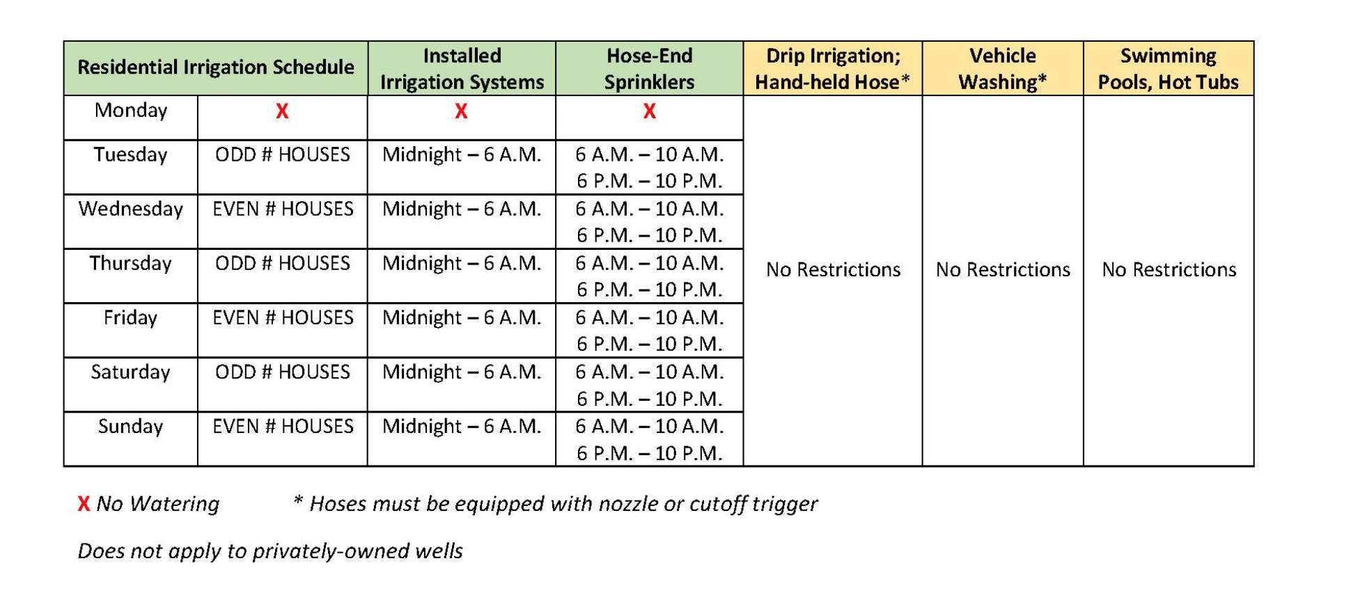 - Fill or top off swimming pools only from dusk until dawn.