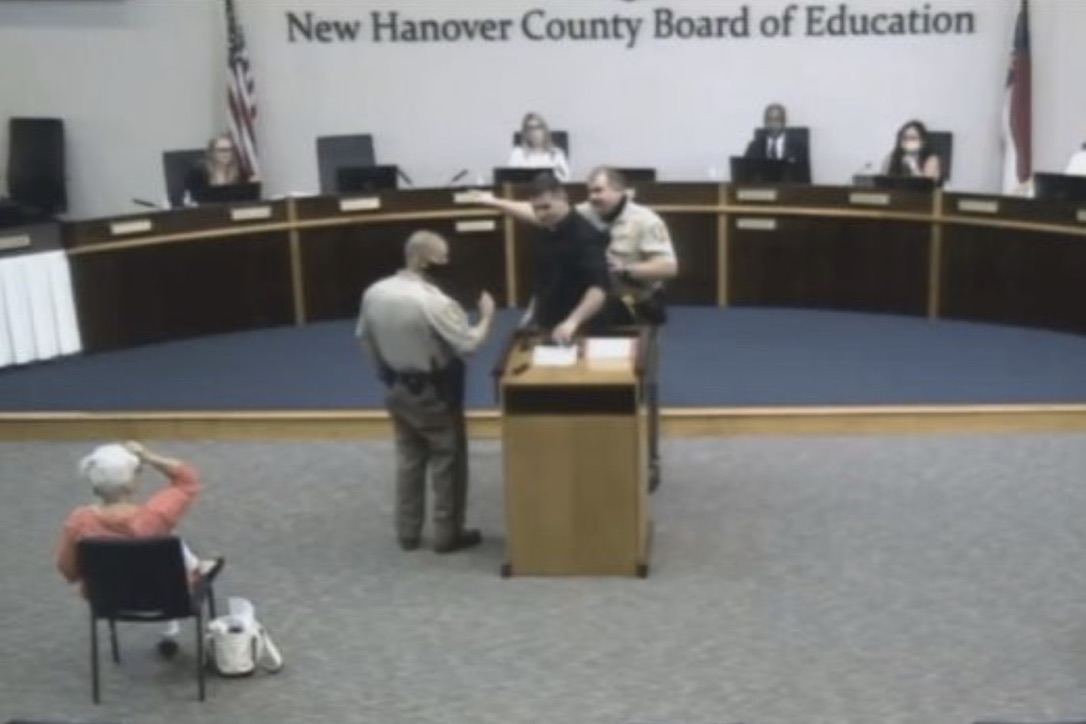 NEW HANOVER COUNTY –– Outside the June 8 New Hanover County Board of Education meeting, tensions heightened as two opposing groups shoved each other to reach the door and increase their chances of entry into the public meeting. Attendance was limited to just 50 people due to ongoing Covid restrictions, yet 54 speakers had signed up for public comment.