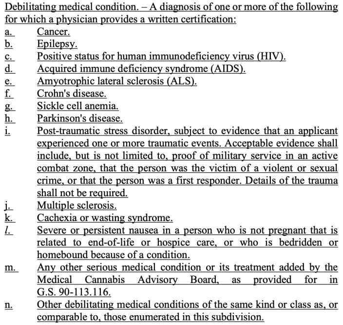 Bill sponsors have emphasized at hearings that SB711 is among the most regulated cannabis bills to be proposed in the United States. Its language enumerates a tight list of qualifying conditions, excluding those like chronic pain, opioid dependency and anxiety.