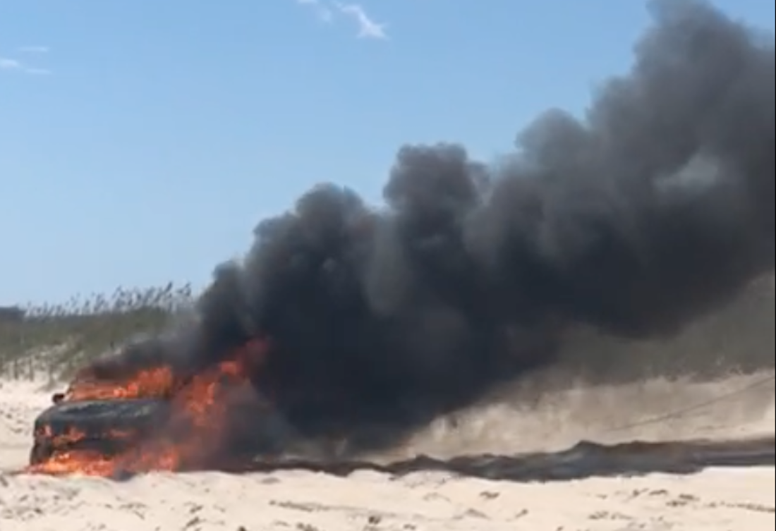 About 30 minutes prior to the announcement, crowds on the beach witnessed a truck on fire after getting stuck in the sand while attempting to drive onto the north end. One bystander, David Rishel, recorded an 8-minute video of the incident and streamed it via Facebook Live.