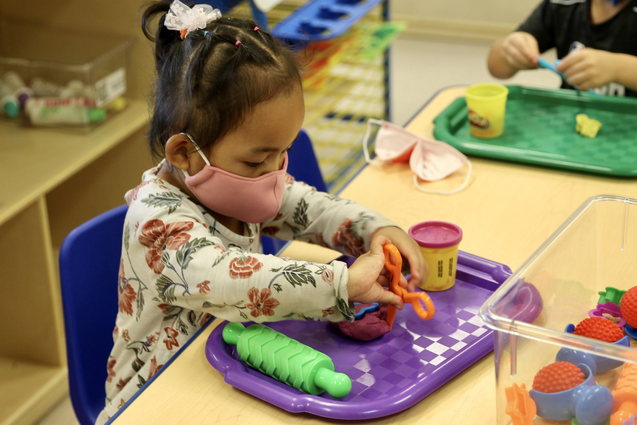 Inside the preschools, classes are back at capacity, but students are still wearing their masks when not eating or drinking. The children arrive at 7:15 a.m. and are dismissed by 2:45 p.m. In between, they are kept on a tight schedule: play to learn, eat nutritious meals and snacks, and even practice brushing their teeth.