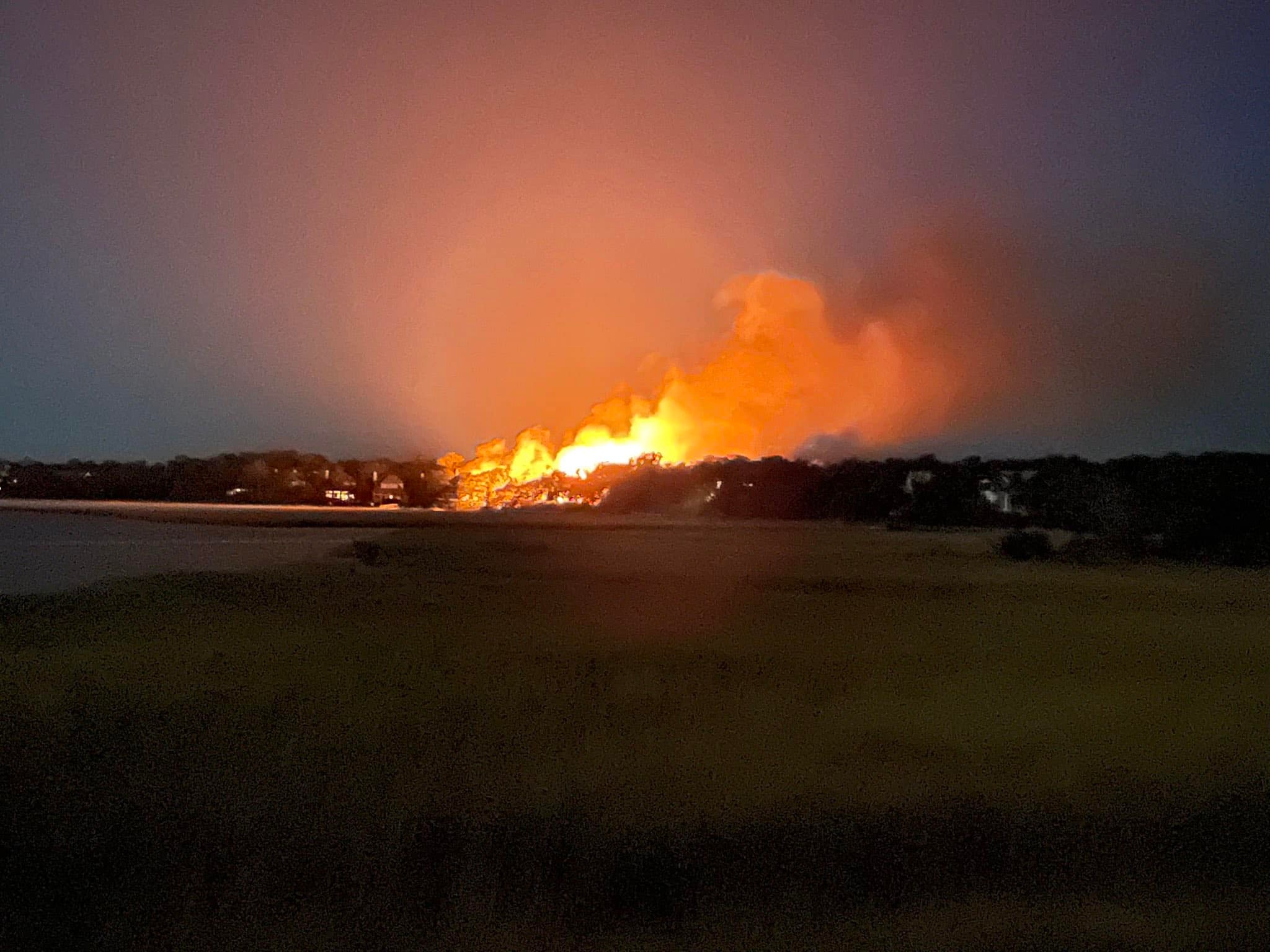 10:39 p.m. more tankers and brush trucks arrive, the latter head to Stede Bonnet Wynd. Firefighters are instructed to check the golf course for hot spots. Coast Guard inquires if and how they can help — firefighter’s response: “We are going to be here for awhile.”