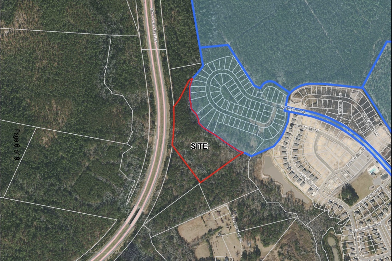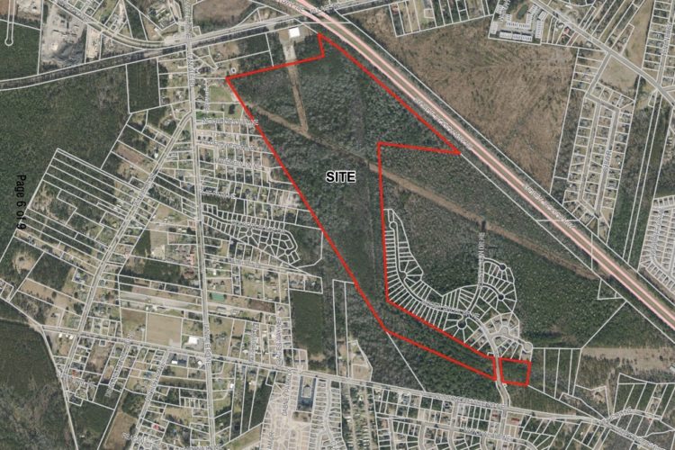 Approximately 10 acres up for rezoning near Interstate I-140 and the Seabrooke subdivision is currently zoned rural residential in Brunswick County. In the Leland 2045 plan, the property is marked as having some potential for development while also being an ideal place to preserve open space.