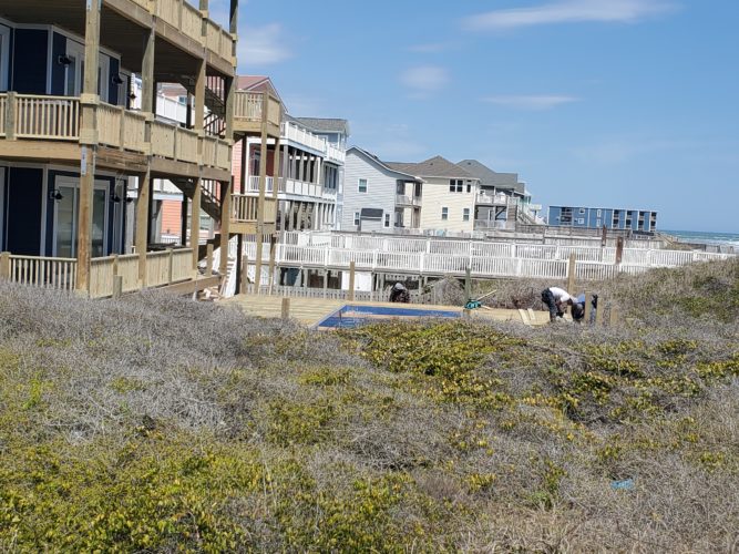 The Division of Coastal Management, issuer of CAMA permits, has visited the Porpoise Place location twice and verified the grading work was up to standard and within the 60-foot setback. Hill added contractors are not yet done stabilizing the structure.