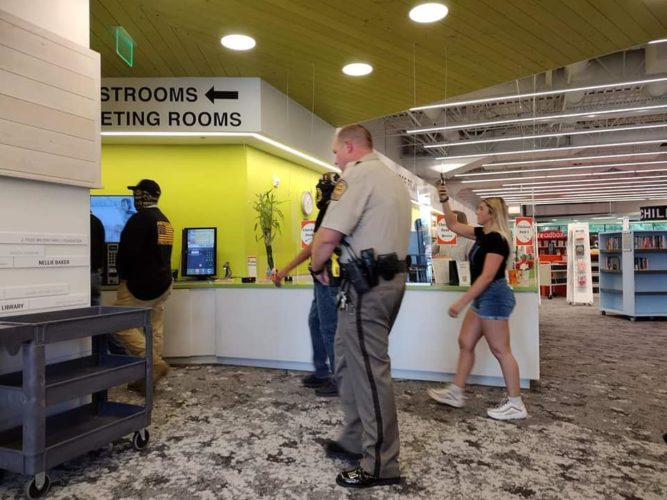 Prior to the event, “deputies and library staff worked to ensure the protesters were not blocking the entrance to the library so patrons could enter,” Thompson said.