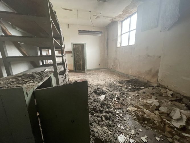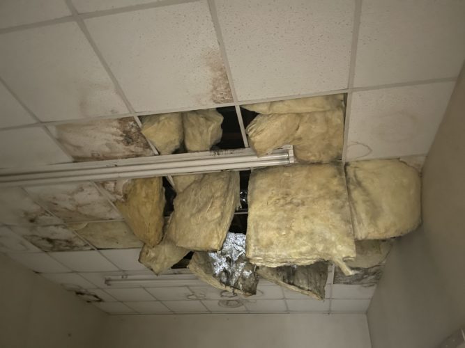 Photos of the interior and exterior of the buildings located within the city’s request-for-proposal packet show broken tiles, moldy ceilings, torn up carpet, dilapidated doors, crumbled plaster walls and overall deterioration of the buildings.