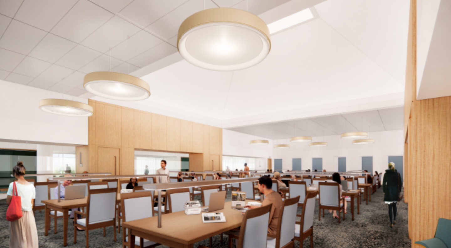 Renovations to existing areas in the current library building will mostly reconfigure office space, but a new graduate student lounge and reading room will be added.