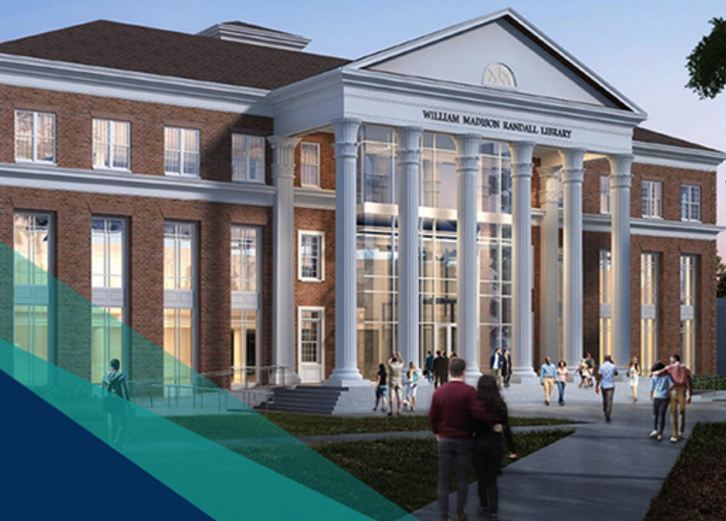 The library spaces will be connected via a two-story bridge called “The Link,” much like the sky bridge that joins UNCW’s two Fisher buildings. The connector will be surrounded on both sides by lawn and terrace seating areas.