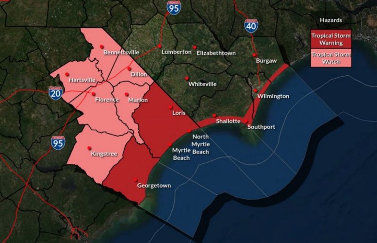 The National Weather Service has issued tropical storm warnings up the coast of the Carolinas. A tropical storm watch has also been issued in inland areas of South Carolina.