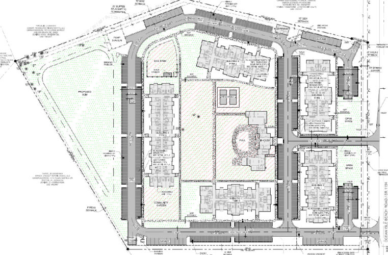 This 198-unit multi-family project is proposed off Ocean Isle Beach Road, west of North Carolina Highway 179. The project would consist of five apartment buildings, a clubhouse, pool and pickleball courts..