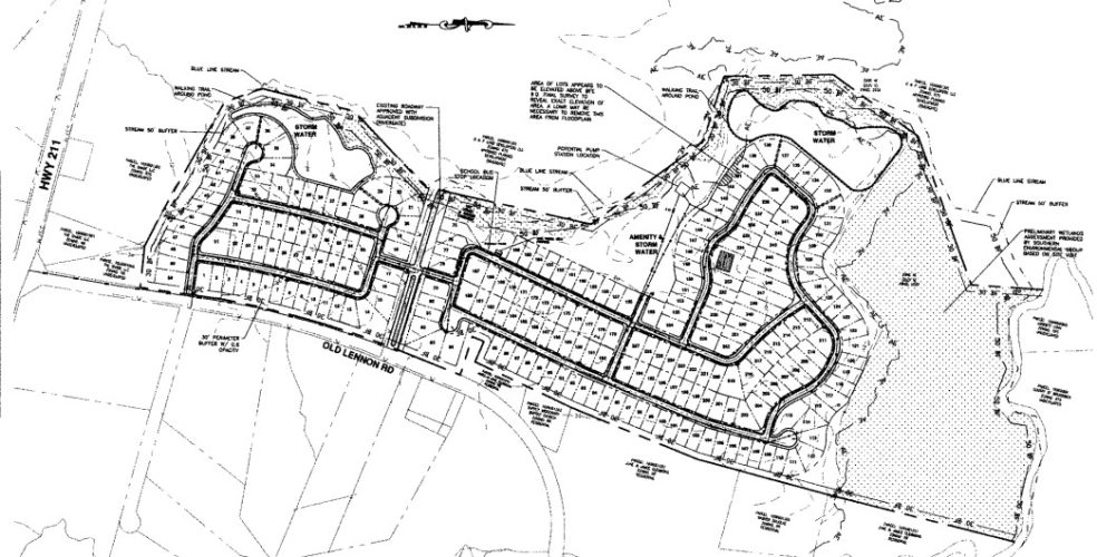 This project, another located off Highway 211, was approved by the planning board during its Nov. 14 meeting. It consists of 252 single-family homes across 105 acres, totaling 2.39 units per acre. The lots will be at least 6,600 square feet in size, and the development is a project of Virginia-based Stanley Martin Homes.
