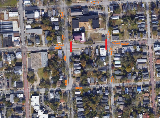 Motorists will be detoured around the closure using Campbell Street or Walnut Street (see the map above). Any area residents needing to get through will be allowed.