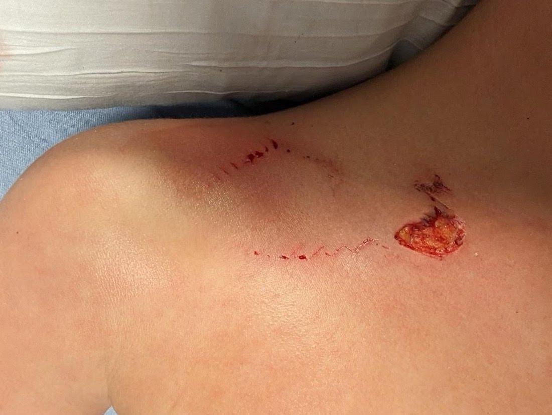 A call to 911 wasn’t made, though the family took the child to Dosher Memorial Hospital in Southport to be treated. A photo provided to the town by the family show small teeth marks and an open wound near the collarbone. No major injuries were sustained, nor were stitches required.