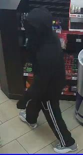 The suspect, described as a Black male, was wearing all black and concealed his identity with a hood and face covering. He was wearing black pants with white stripes and distinct gray and white shoes. He was last seen fleeing the area on foot toward Goodman Road and is believed to be local to the area.
