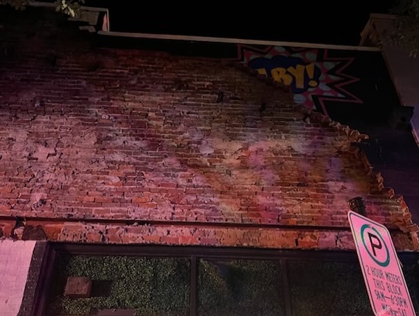 An investigation is underway to determine the cause of destruction, which occurred around 7:45 p.m. It has affected a row of businesses along Grace Street, including Rumcow, Tacobaby, and Kat 5 Kava. Crews are working to stabilize the structure.