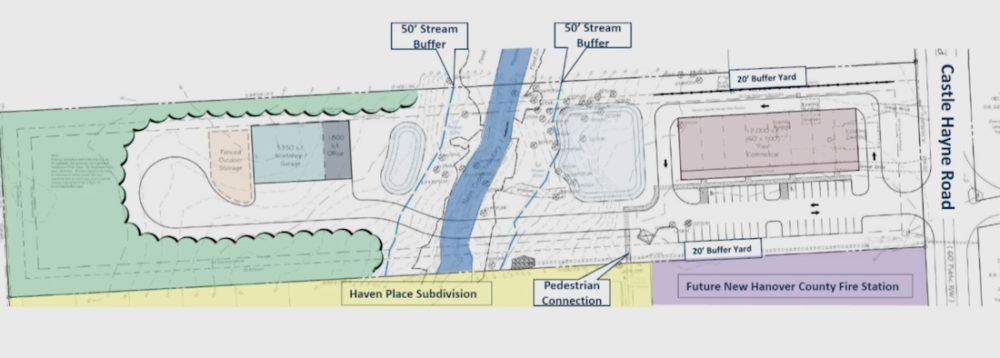 The parcel is split-zoned — neighborhood business and residential. It’s near a potential new fire station in the Wrightsboro area as well as Haven Place housing development from Cape Fear Habitat for Humanity. The applicant requested to rezone the site conditional business district