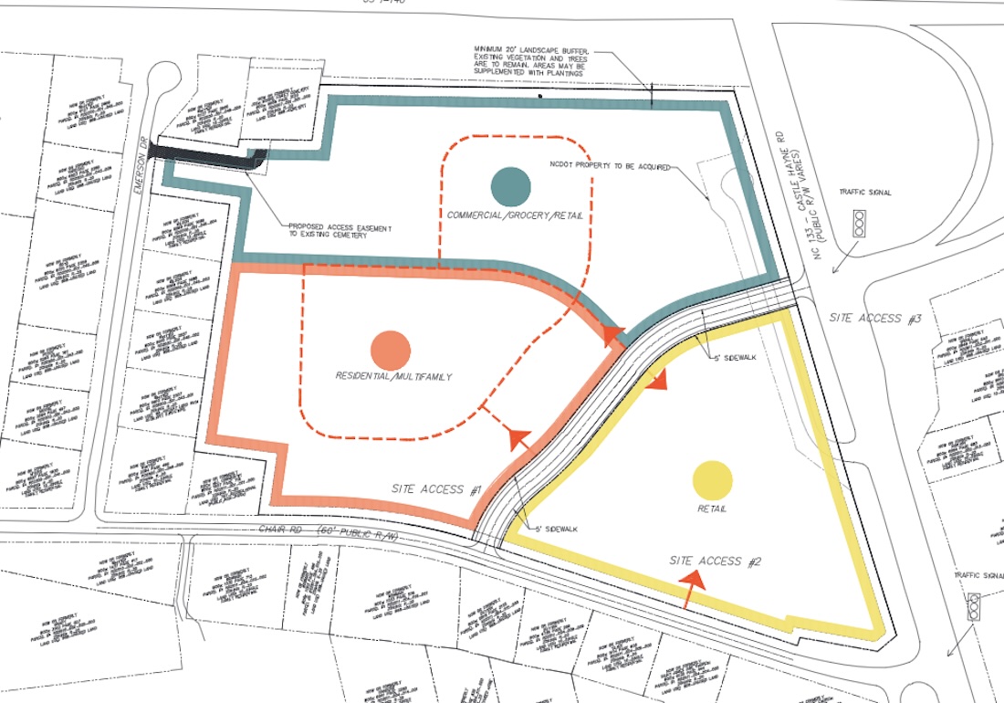 Site access to the proposed 27-acre mixed-use development from BDLCT would be allowed from Castle Hayne Road, as well as nearby Chair Road.