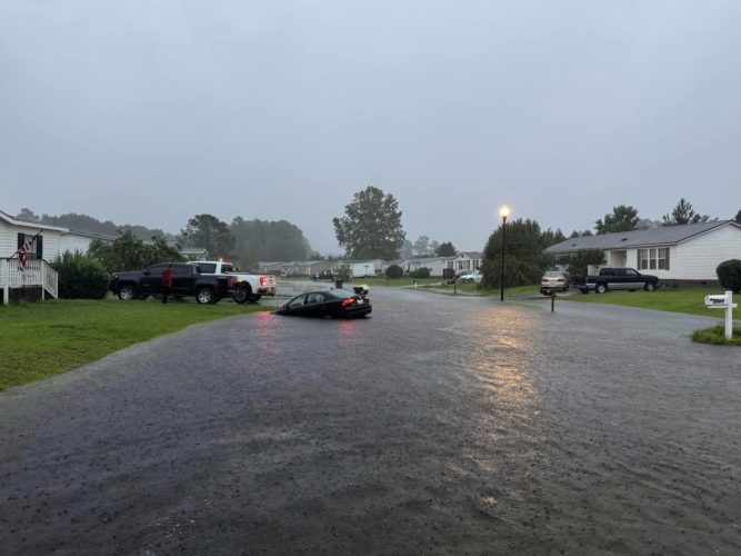 The Northeast Cape Fear River is also flooding near Burgaw in Pender County. It’s at 15.3 feet, with areas nears Lanes Ferry on Highway 210 potentially flooded. As well, much of White Stocking Road is closed and the wildlife ramp on Shaw Highway is underwater.
