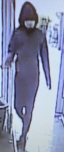 The person was last seen walking toward Medical Center Drive, wearing a solid gray jacket, black hoodie and leggings and a yellow surgical mask.