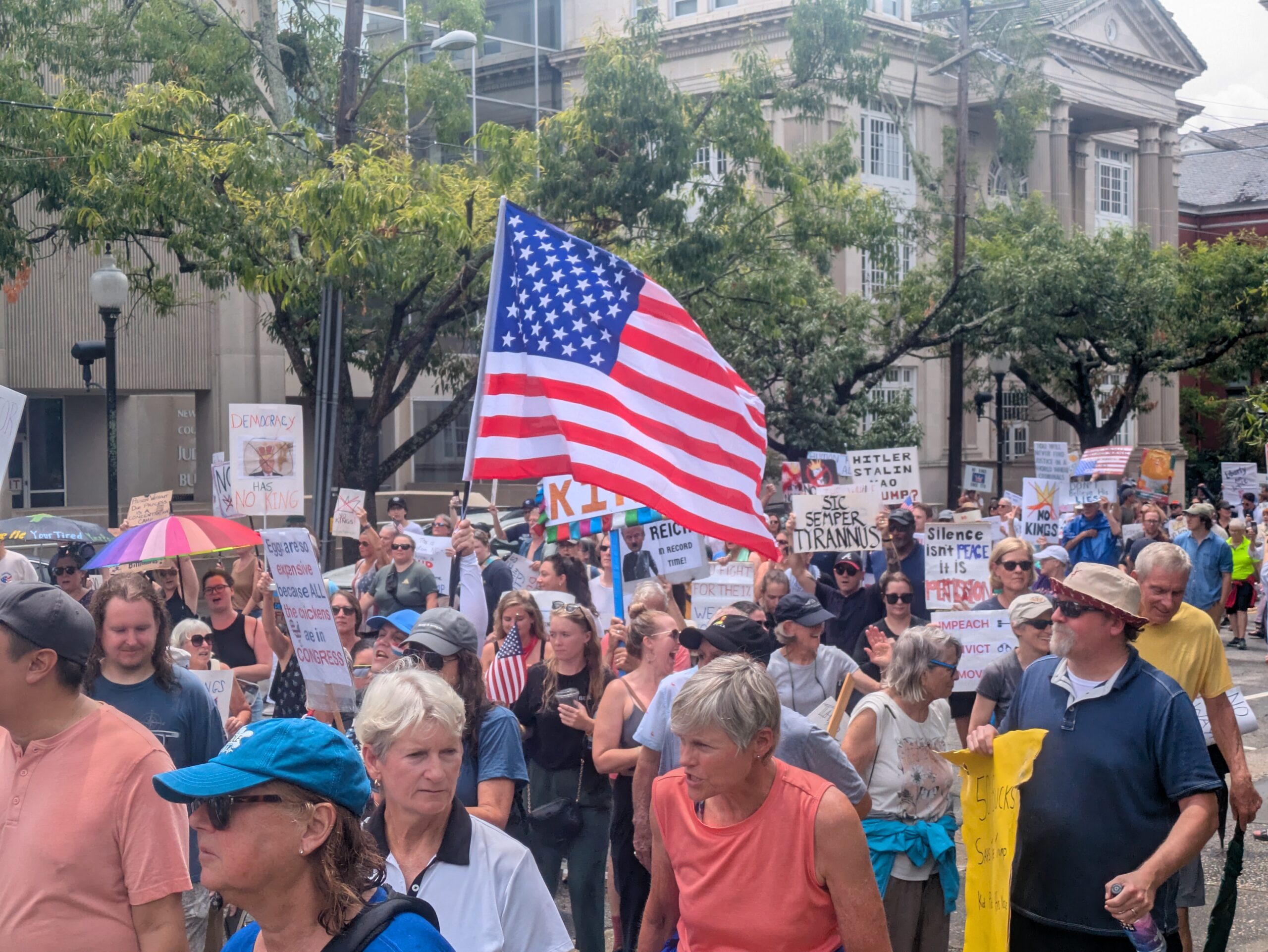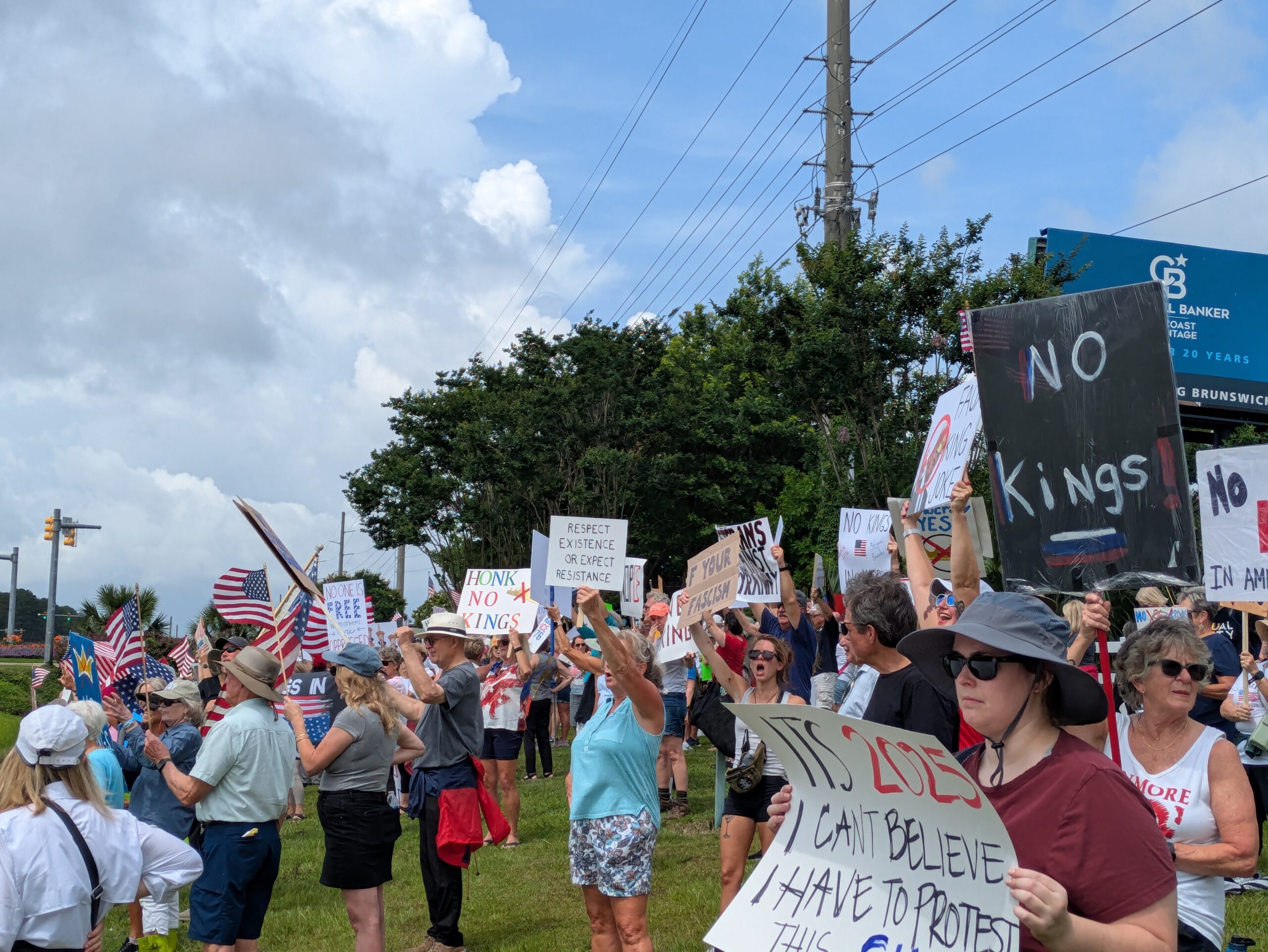 SOUTHEASTERN N.C. — While President Trump celebrated his 79th birthday and the Army’s 250th birthday with a military parade in Washington D.C. on Saturday, “No Kings Day of Defiance” protests were among over 2,000 nationwide demonstrations held to challenge the administration’s policies. Upward of 7,000 people from Wilmington to Shallotte to Leland engaged in peaceful protest, though police did respond to one incident involving a weapon.