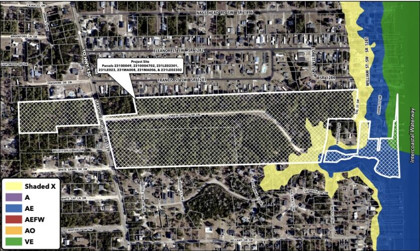Per traffic, Pages said the development will bring in 1,530 weekday trips in a 24-hour period, but no additional turn lanes are warranted near the development, according to North Carolina Department of Transportation’s analysis. The existing central dirt road, Pirate Shore Drive, will be finished and paved by the developer, and an earthen dam will be covered by a bridge.