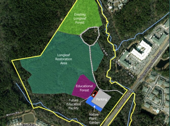 - Restoring the 20-acre existing loblolly pine forest to become a natural longleaf pine area, as well as pollinator, and carnivorous gardens