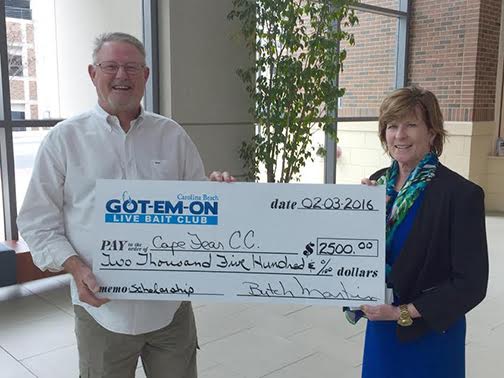 The college received the donation from Got-Em-On-Live Bait Club, which will be added to the club’s endowed scholarship for students studying in the marine technology program, according to CFCC Spokeswoman Sonya Johnson.