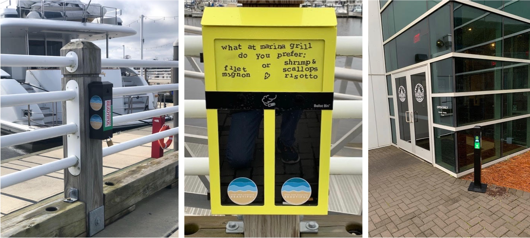 KNHB has more than 275 cigarette butt canisters across New Hanover County — seven near Port City Marina. Volunteers, including UNCW environmental science students, make rounds collecting the butts.