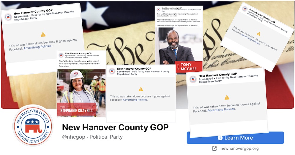 A spokesperson for Facebook said fact-checkers who operate independently of the company cited the New Hanover GOP repeatedly for violating Facebook’s misinformation policies, and the page was demonetized according to Facebook’s protocol. The spokesperson did not say which claims made by the GOP were marked as misleading or untrue. Political advertisement policies on Facebook were tightened in the lead up to the election, and all ads concerning social and political issues were indefinitely banned following the election.
