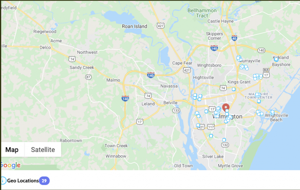 The original geofenced ads covered places like The Pointe movie theater, Los Portales Supermarket, the N.C. Aquarium at Fort Fisher, Independence Mall and Mayfaire Town Center.