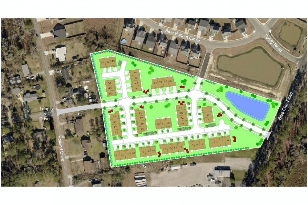 The project on Monday’s agenda, Blue Clay Townes, is located just south of Rachel’s Place — a subdivision approved in 2016 that was similarly built on a slice of the Trask family’s plentiful land holdings.